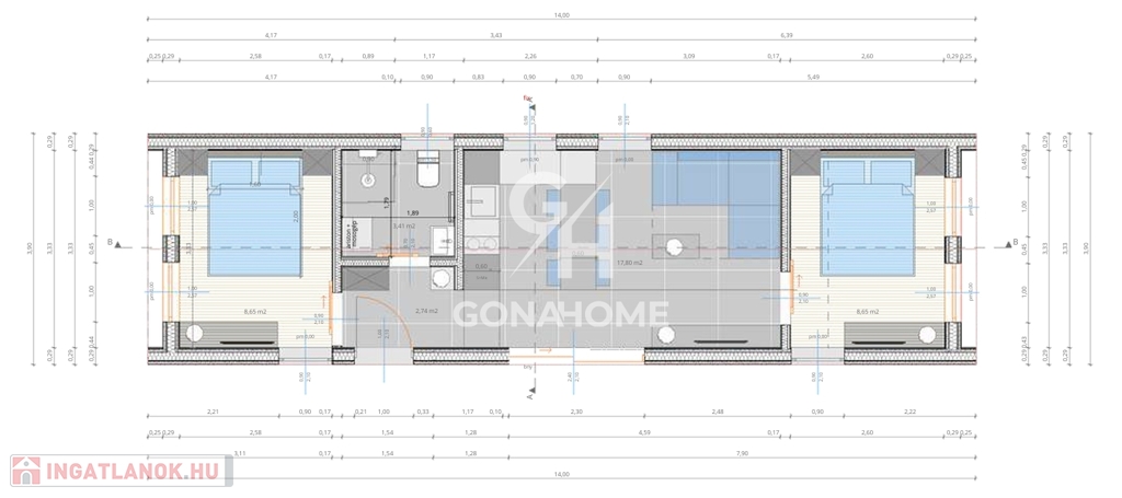 - A hirdetett modulház nettó alapterülete: 41,25 m2