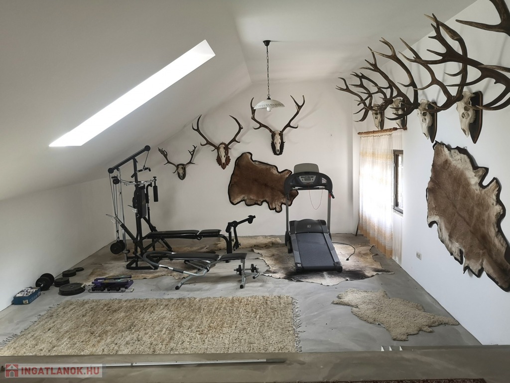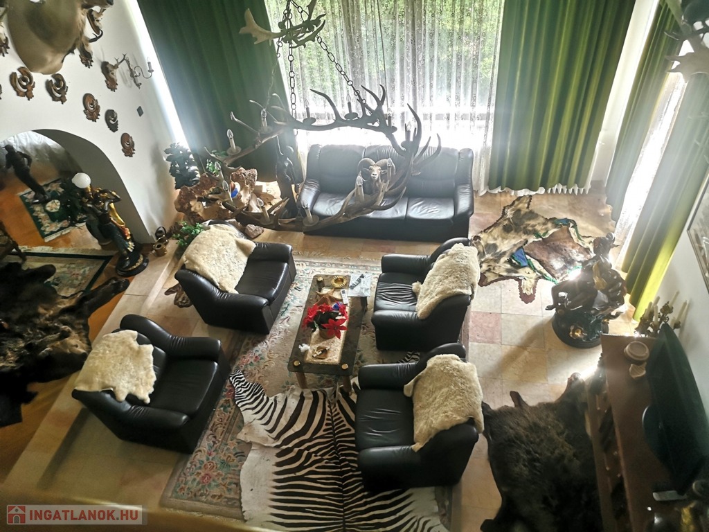 Zala vármegye, Zalaegerszeg, 530m2-es családi ház eladó. A zalai megyeszékhelyen, Alsóerdő közelében található ingatlan 1897m2-es, parkosított telken helyezkedik el. Az udvaron vízforgatós medence, kerti kiülők, szaletli, stb. szolgálja az ott tartózkodók kikapcsolódását. A 80-as évek elején épült, tehermentes ház garázsszintjén a duplagarázson kívül kazánház, 2 tágas tároló, lépcsőház, közlekedő, szauna, konyha és borozó, a fogadószinten nagyméretű, légkondicionált, teraszos nappali, két erkélyes szoba, fürdőszoba, lépcsőház, közlekedő, konyha étkezővel és kamra, az emeleten további négy szoba, (melyekből kettő erkélyes), gardrób, közlekedő, lépcsőház és fürdőszoba, végül a beépített tetőtérben társalgó, tároló és konditerem került kialakításra. A bútorozott ingatlan melegéről gáz-, és vegyes tüzelésű kazán gondoskodik, radiátoros hőleadókkal.