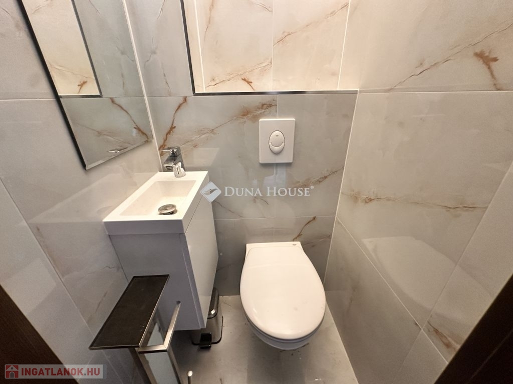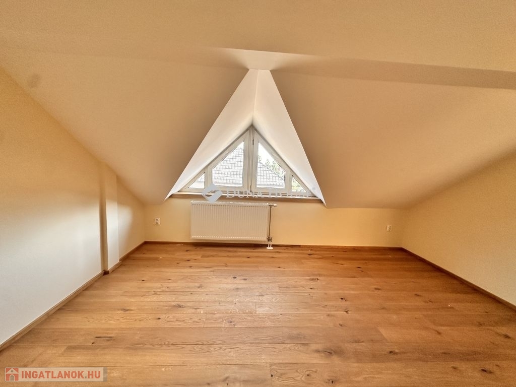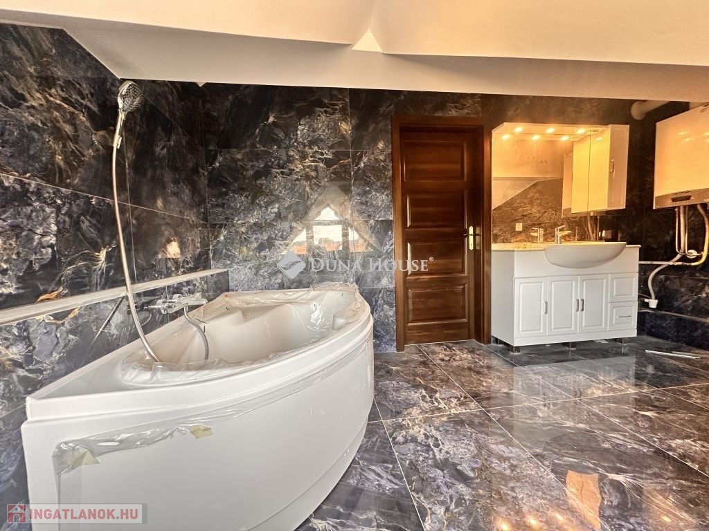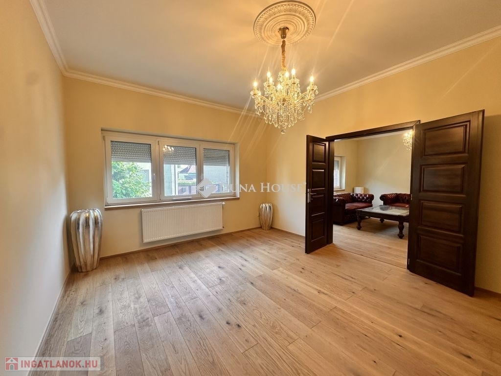 Földszinten: egy tágas és igazán ízlésesen berendezett gyönyörű cserépkályhával ellátott nappali, három egymásból nyíló szoba, ami külön-külön is megközelíthető, konyha ami kapcsolatban áll az étkezővel, a fürdőszoba, melyből az egyik közvetlenül a gardrób mellett áll, különálló WC, optimális méretű spejz, és egy hatalmas, világos előszoba, a gyönyörű fából készült lépcsőházzal.