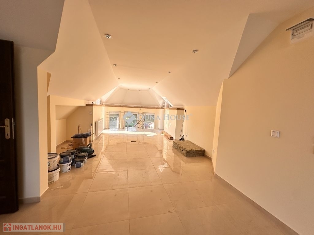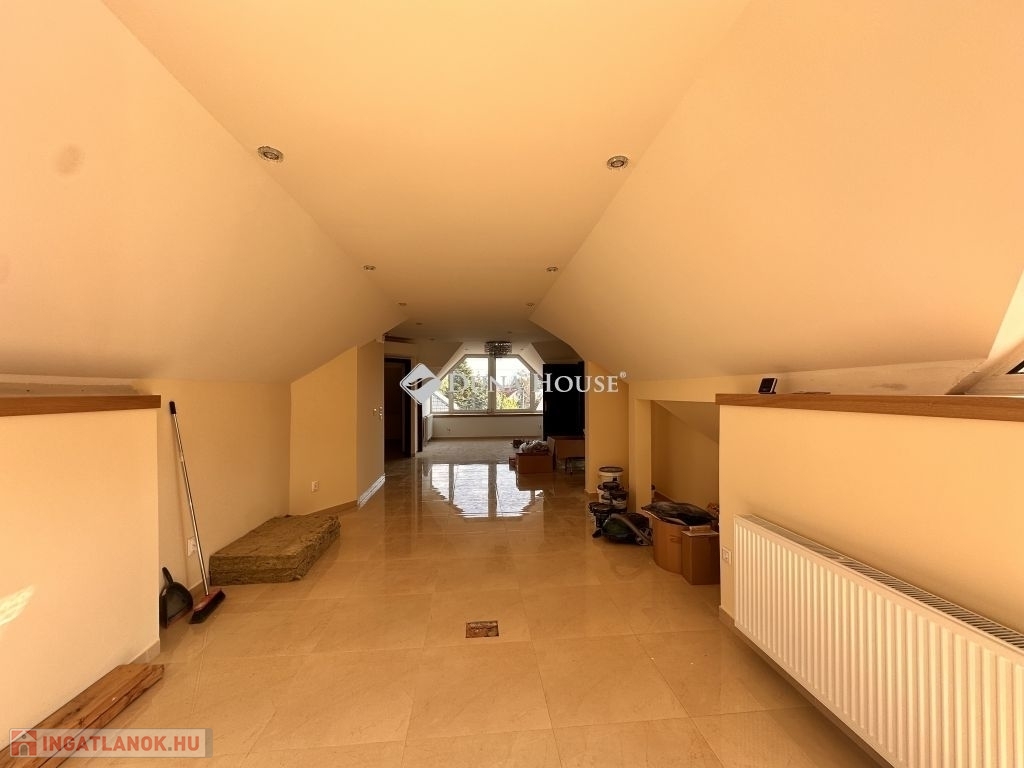 Emeleten: világos, egybefüggő élettér ( nappali) amelyből nyílik a három hálószoba, egy fürdőszoba, két különálló terasz.