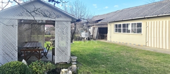 A kertben számos díszbokor és termő gyümölcsfa található, többek között körte, alma, dió, a kerti kiülő pedig lehetővé teszi a kellemes együttlétet a család számára. A gondozott, körbekerített udvar biztonságos teret biztosít gyermekeknek és háziállatoknak egyaránt.