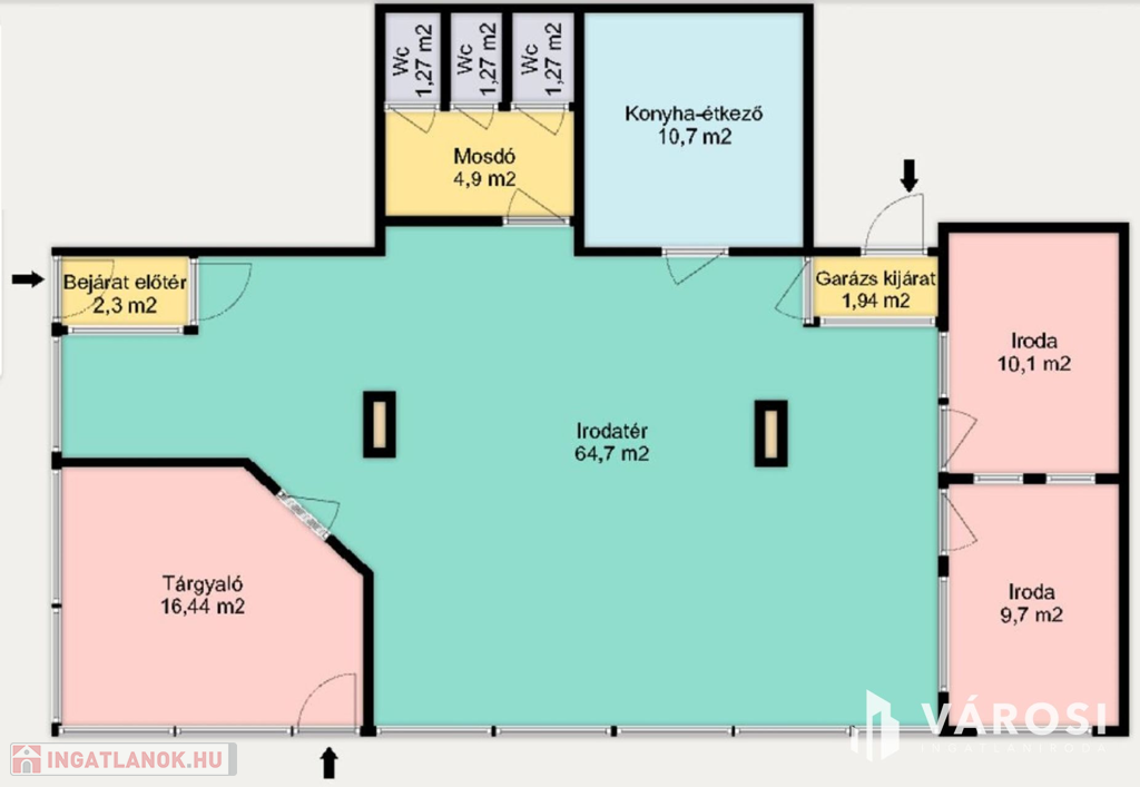 Az iroda elrendezése megtekinthető a csatolt alaprajzon, a képek pedig magukért beszélnek.