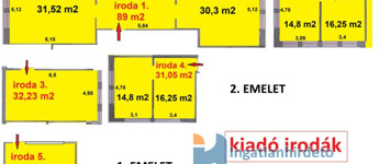 Irodák 27 m2-től 90 m2-ig bérelhetőek.