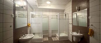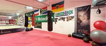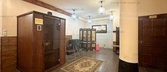Lower level: 560 sqm with wellness area, boxing room, men's and women's changing rooms with showers, massage, beauty salon.