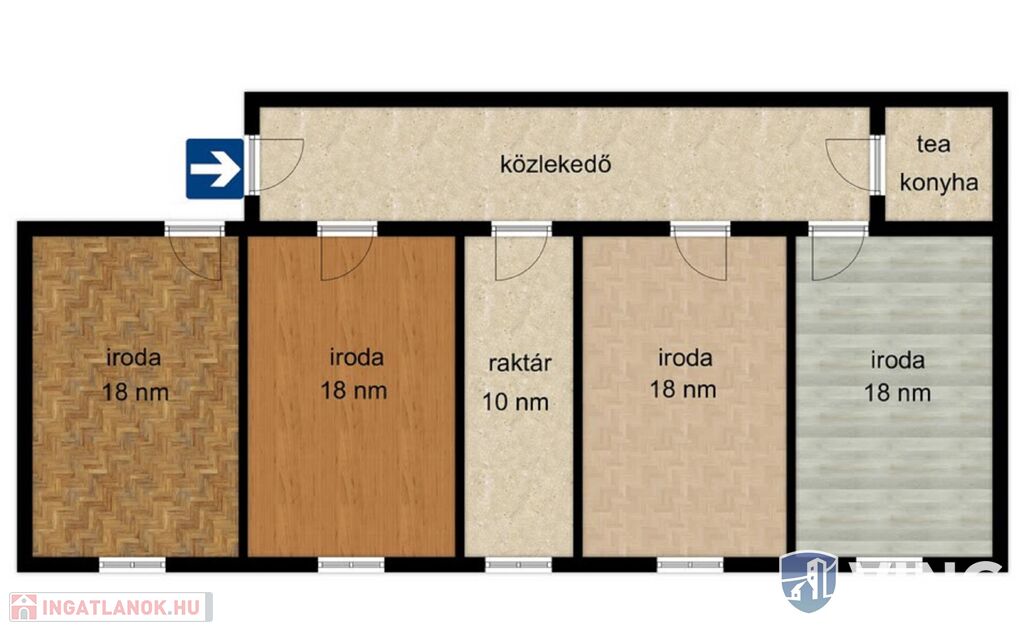 - 4 db. iroda teakonyha, közlekedő, és egy raktárhelyiség, ezekből adódik a teljes 104 nm.