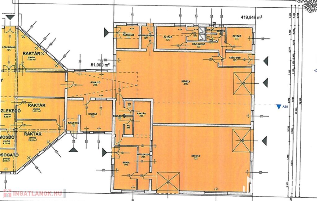 -Bemutatóterem és üzlethelyiség: 100-300m2 között