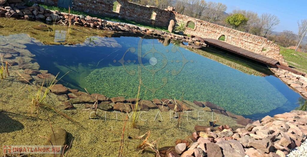 egyedileg kialakított, természetközeli fürdőtó