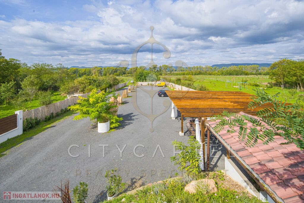 A közel 8000 nm-es, belterületi, teljesen körbekerített telek valódi élményteret kínál a vendégek számára: