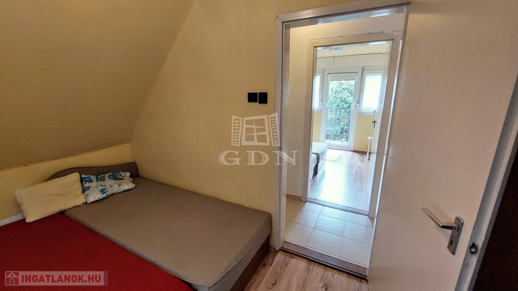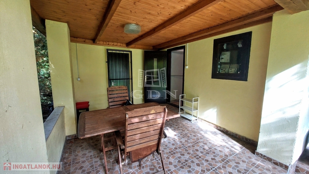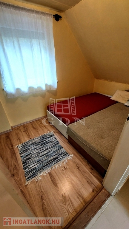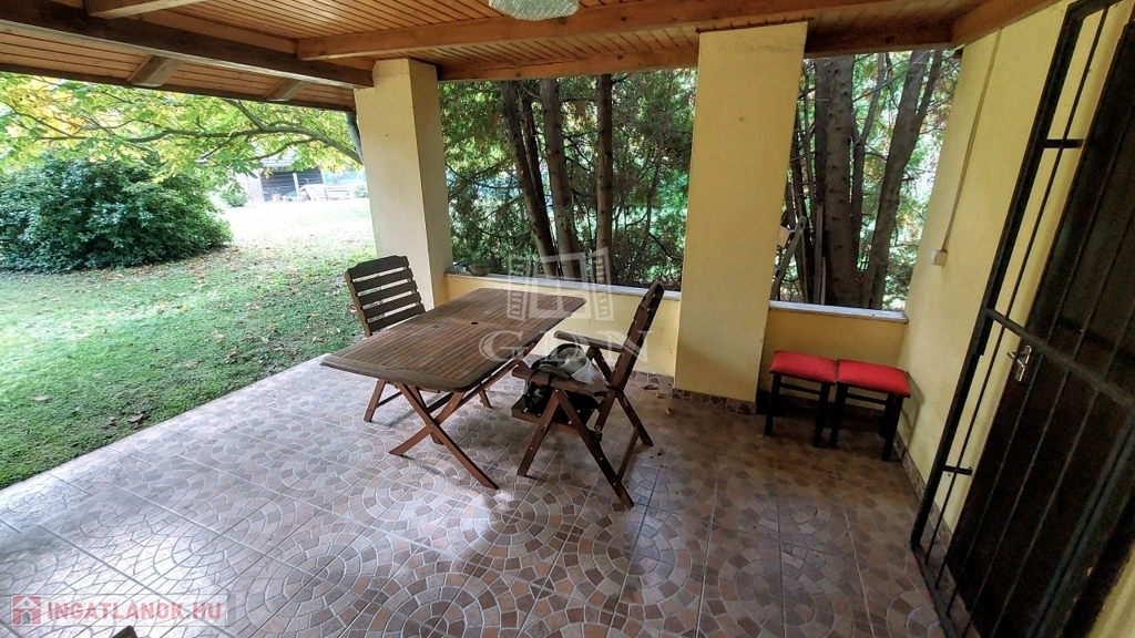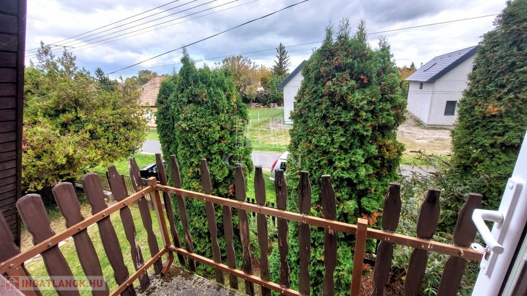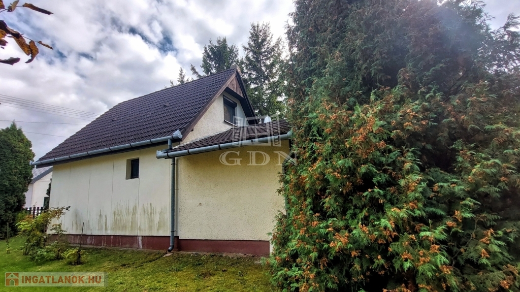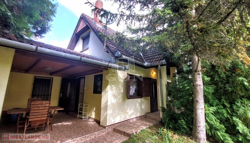 A téglából épült 59 m2-es házat örökzöldek veszik körül bájos, romantikus környezetet teremtve. A szép, rendezett kertben a tuják mellett számos gyümölcsfát is találunk. A nagy, fedett terasz összeköti a kertet és a házat, kiváló helyszín családi, baráti összejövetelkhez. Innen nyílik az egy légterű nappali-konyha-étkező, ahonnan nyílik a fürdőszoba és innen lehet felmenni a két fenti hálóhoz.
