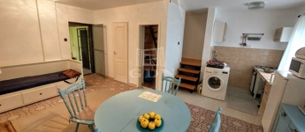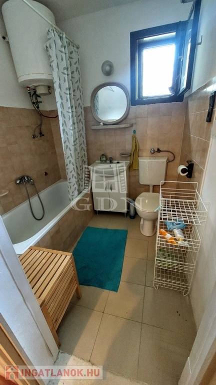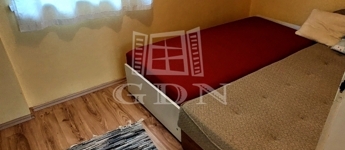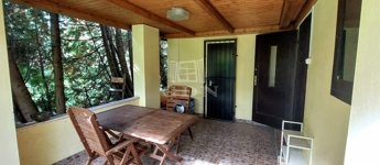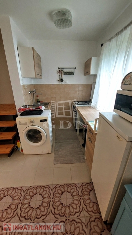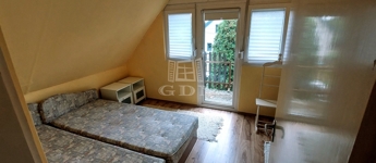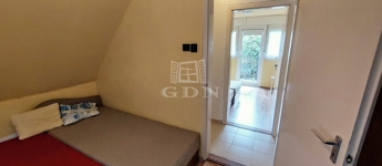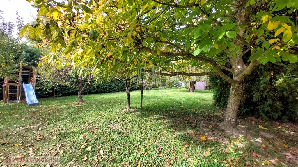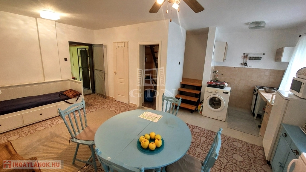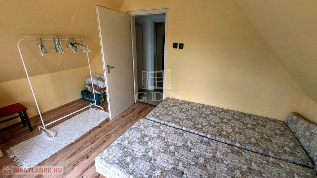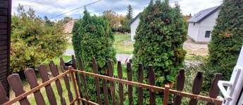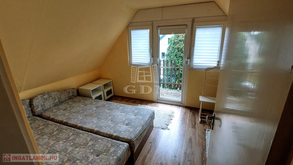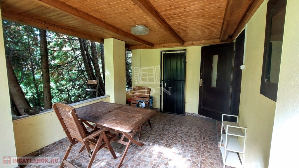 A téglából épült 59 m2-es házat örökzöldek veszik körül bájos, romantikus környezetet teremtve. A szép, rendezett kertben a tuják mellett számos gyümölcsfát is találunk. A nagy, fedett terasz összeköti a kertet és a házat, kiváló helyszín családi, baráti összejövetelkhez. Innen nyílik az egy légterű nappali-konyha-étkező, ahonnan nyílik a fürdőszoba és innen lehet felmenni a két fenti hálóhoz.