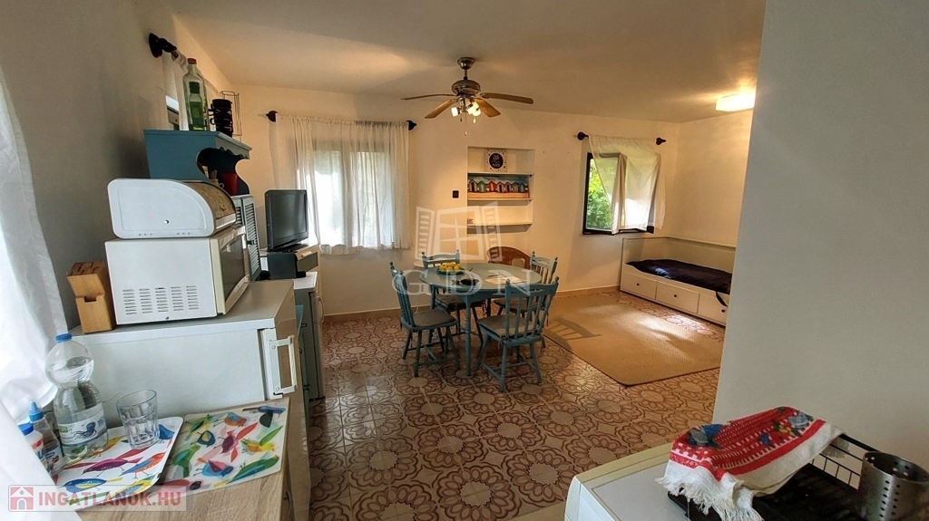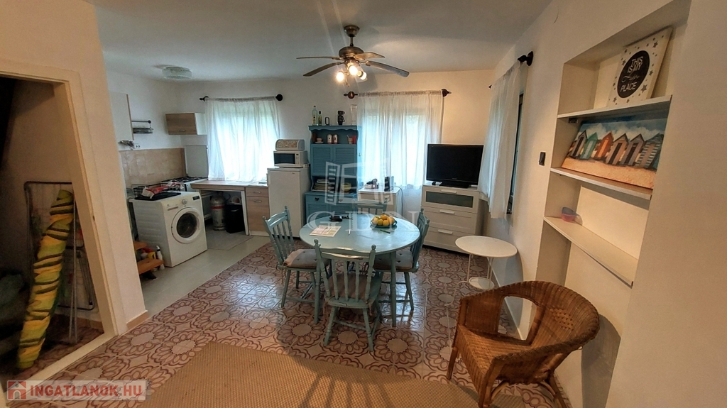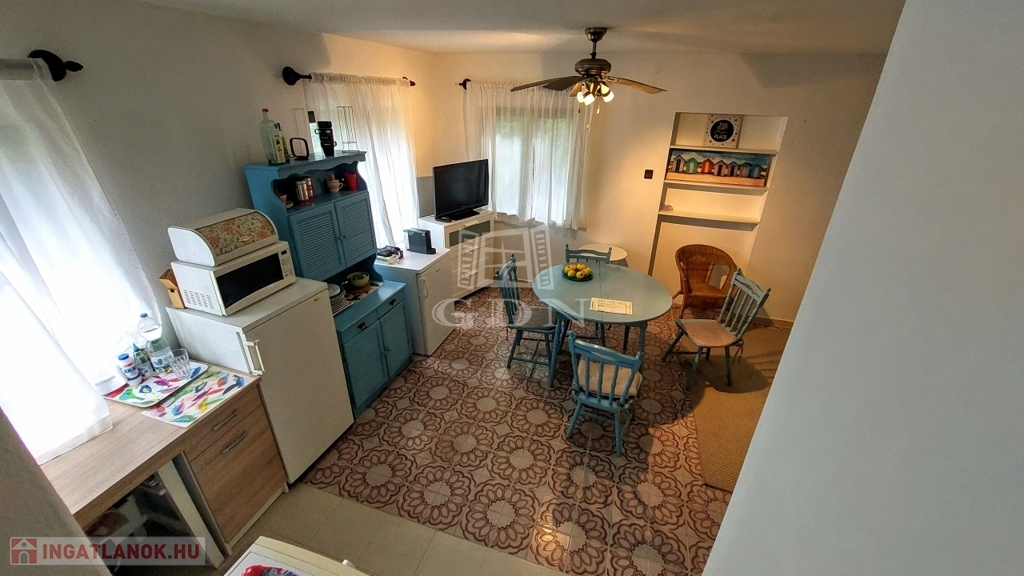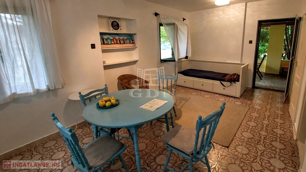 Balatonkeresztúron csendes utcában 525 m2 telken eladó ez jó állapotú ház, amelyet jelenlegi tulajdonosa nyaralónak használ, de alkalmas családi otthonnak is.