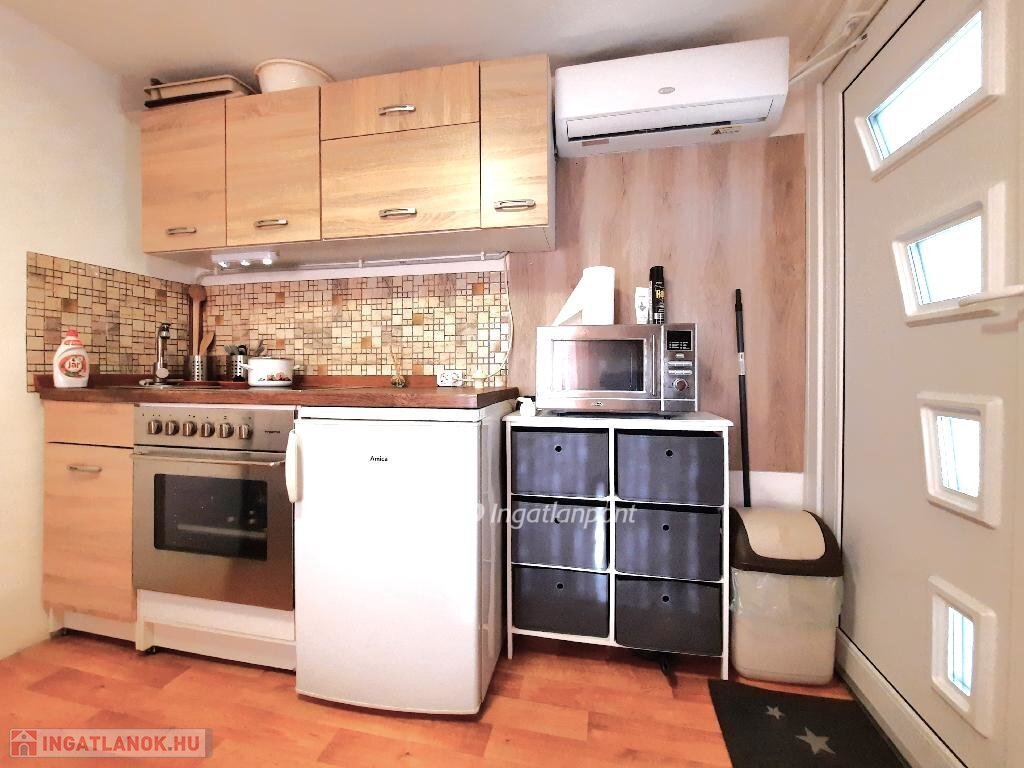 Balaton-part vonzáskörzetében, Lepsény Szőlőhegyen nyaraló eladó. Az ingatlan a Balaton-parttól, strandoktól 11-12 km-re, autóval 15 percre található. Az önálló helyrajzi számon nyilvántartott, 190 m2-es telken, hivatalosan gazdasági épület megnevezésű 11 m2 kis ház szoba és vizesblokk helyiségekből áll, melyhez 12 m2 fedett terasz és a föld mélyében 32 m2 pince - préstér tartozik. Az ingatlan jól karbantartott, használatra alkalmas, jó állapotban van. A fűtés elektromos fűtőpanellel és wifiről vezérelhető klímával megoldott. Víz fúrt kútról, házi vízellátó rendszerrel, meleg víz 80 literes villanybojlerről biztosított. A nyaralásra, kikapcsolódásra ideális ingatlan csendes, nyugodt környezetben, állandóan lakott ház közelében, zártkerti részen helyezkedik el. Eladására a Földtörvény vonatkozik, kifüggesztéssel kerül értékesítésre. Bővebb információért, megtekintését keressen telefonon!