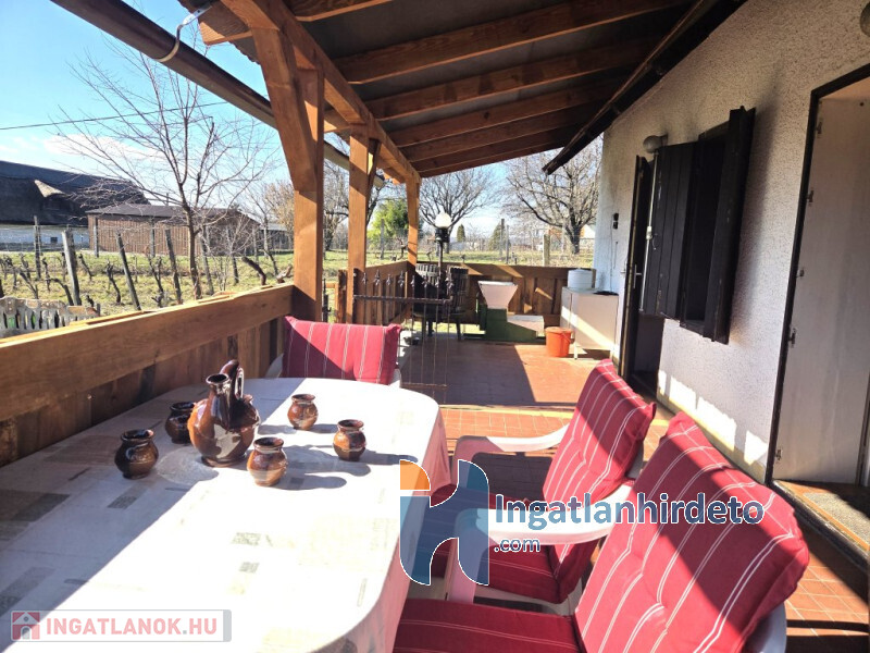 65 m2-es nyaraló. A 2024 m2-es, gondozott telek művelés alól kivont (így azonnal birtokba vehető!), és gazdagon beültetett szőlővel.
