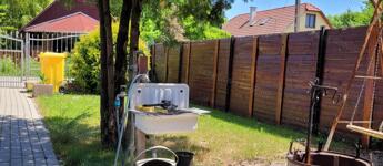 bográcsozási lehetőség, kertkapu a biztonságos, szomszéd házakkal körülvett „focirétre”.