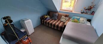 kandalló, a tetőtérben három hálószoba plusz a fürdőszoba.