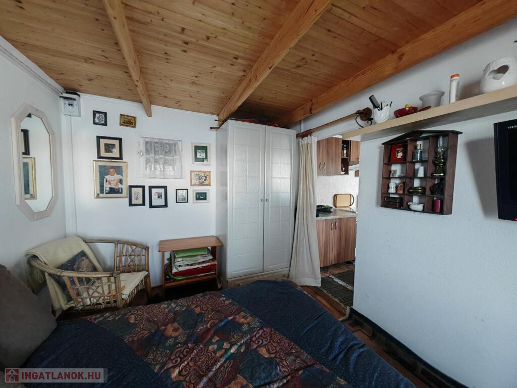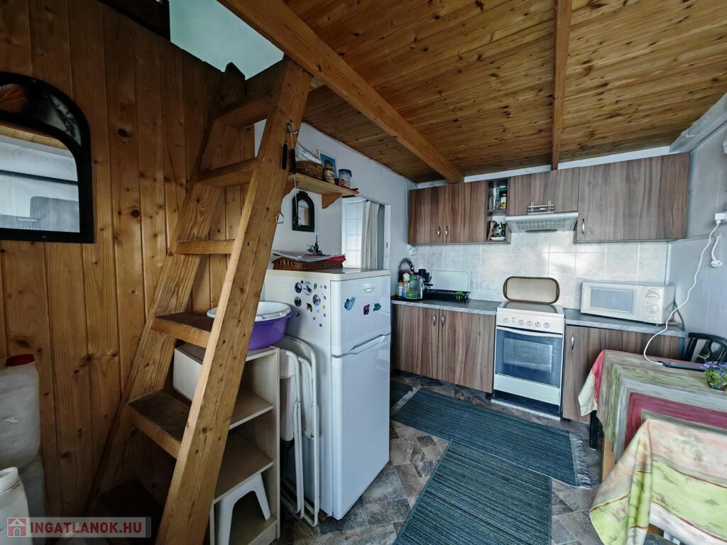 • Egy 33 négyzetméteres, kétszintes, könnyűszerkezetes házat, amely kiváló állapotban van.