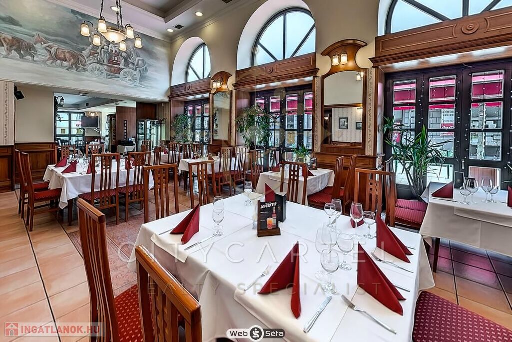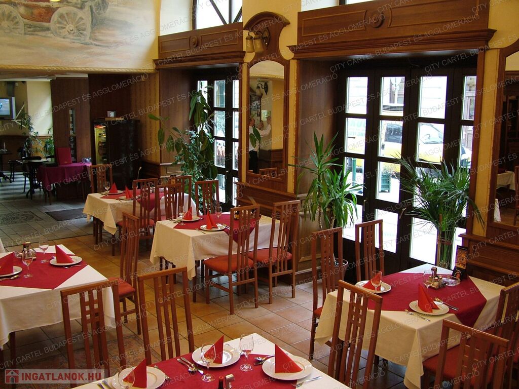 Bejáratott vendégkörrel rendelkező, patinás, nívós, komoly meleg konyhával rendelkező étterem, teljes berendezéssel és felszereléssel együtt.