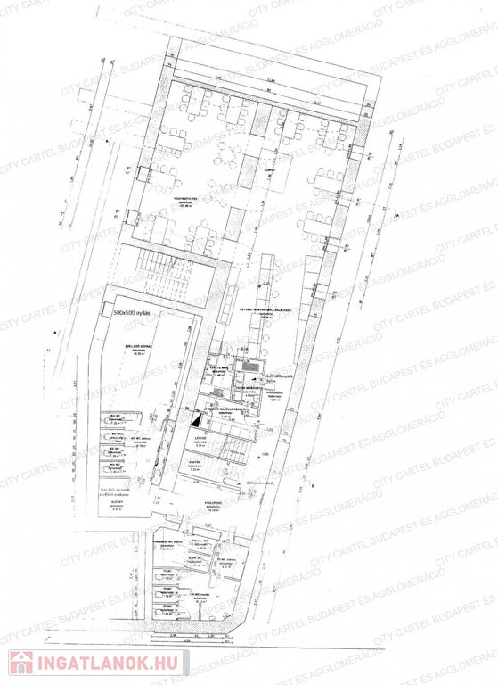 Pince: raktár 107 nm, + vendég WC-ek + gépház, + közlekedő.