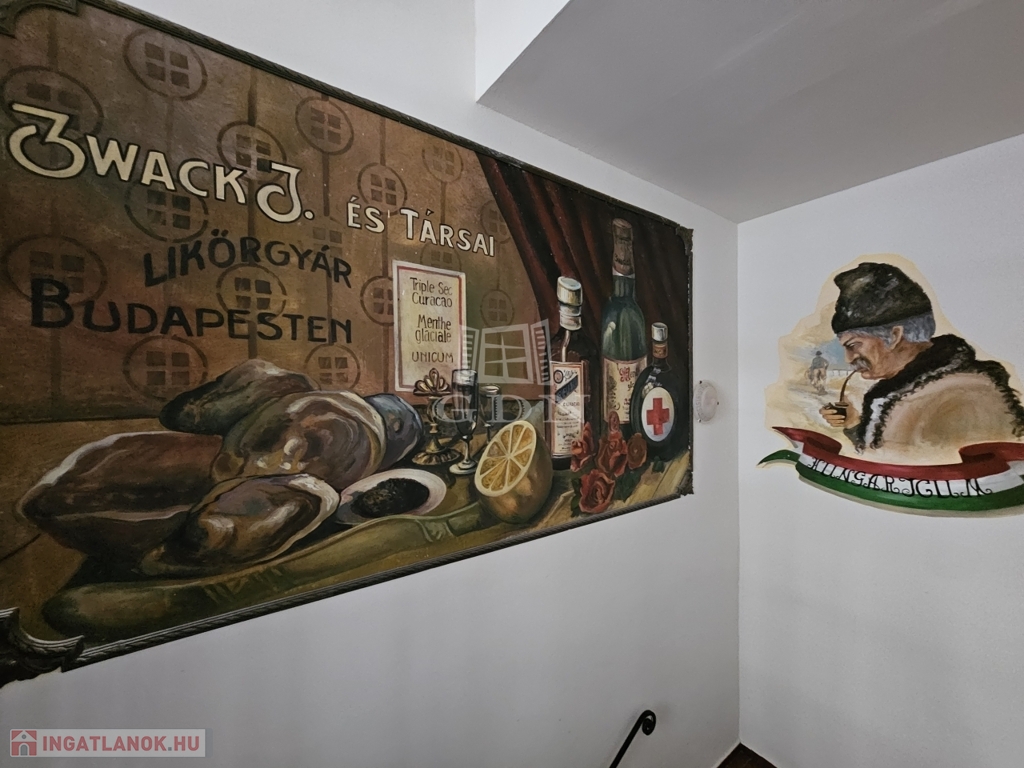 Belső háromszintes megközelítőleg 800 négyzetméter alapterületű ingatlan – két külön és egyben is működtethető vendéglátó egységből áll.