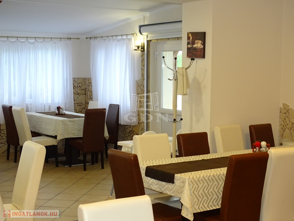 Az étterem mellett 90 nm, 3 szobás, teljesen bebútorozott és gépesített lakás, amerikai konyhával, két fürdőszobával együtt eladó. Kiváló lehetőség a leendő tulajdonos számára helyben lakás céljára.