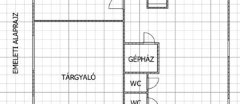 A földszinten konyha, hűtőkamra, raktár, tusoló, öltöző és 2db WC is van. Az emeleten iroda, bemutató/tárgyaló terem, étkező, közlekedő a légtechnikai gépház és szintén 2 db WC is található.