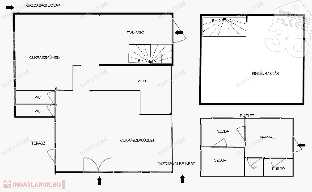 A műhely és a bolt bármilyen más vendéglátó tevékenységre átalakítható ill. leürítve más célú ingatlan hasznosításra is alkalmas.
