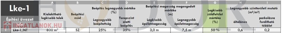 • Telkek kialakítása: A legkisebb kialakítható telekterület 800 nm.