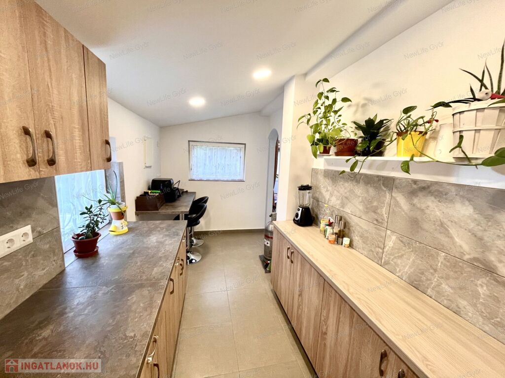 A telek maga nagyon jó méretű, melyen egy 32 nm-es kétszobás ház áll. A ház a '90-es években épült, téglaépítésű (egy kis rész könnyűszerkezetes), melyen 7-10 cm-es homlokzati szigetelés van.