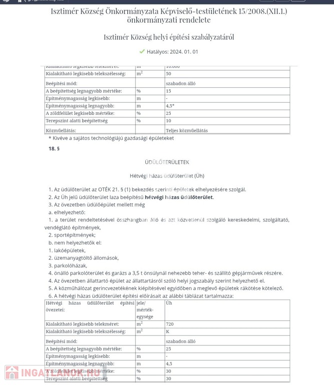 2. Az Üh jelű üdülőterület laza beépítésű hétvégi házas üdülőterület.