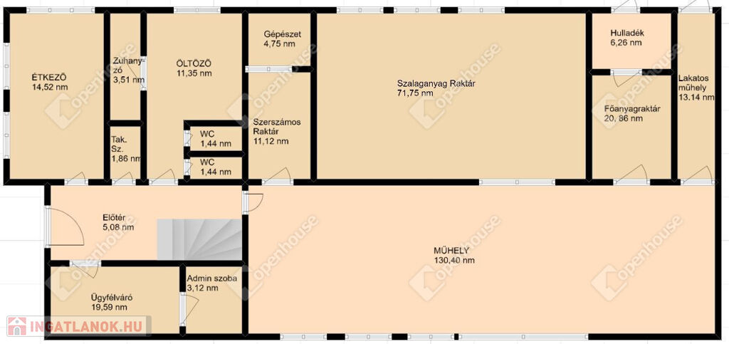 - Az alsó szinten található egy nagy konyha, ügyfélváró, számítógépes terem