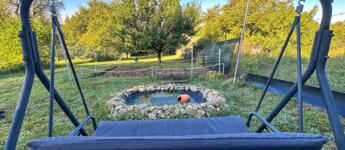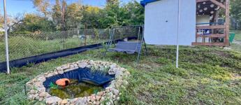 • Hangulatos kerti tó pihenőrésszel, hintaággyal, napvitorlával