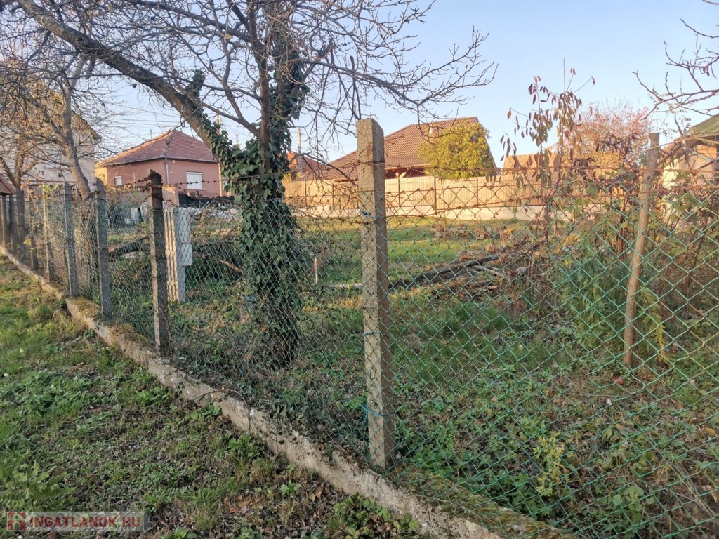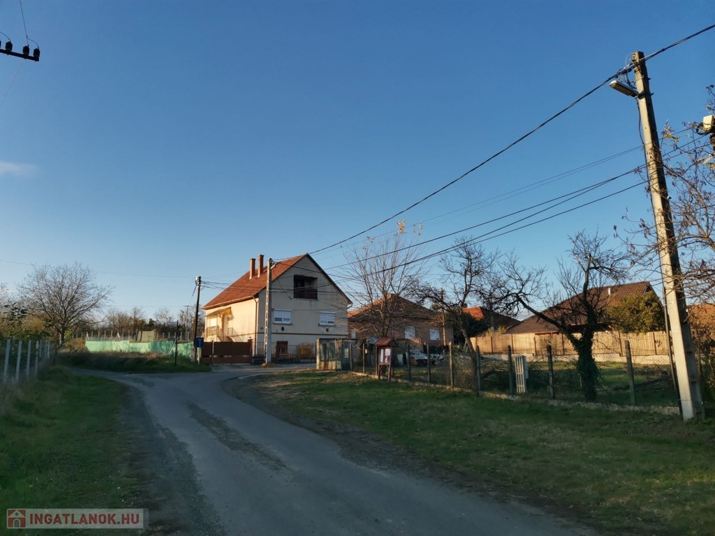 A csendes, aszfaltos utcában elhelyezkedő saroktelek körbekerített, üres, villany, víz, csatorna a telken, a gáz bekötési lehetőség az utcából.